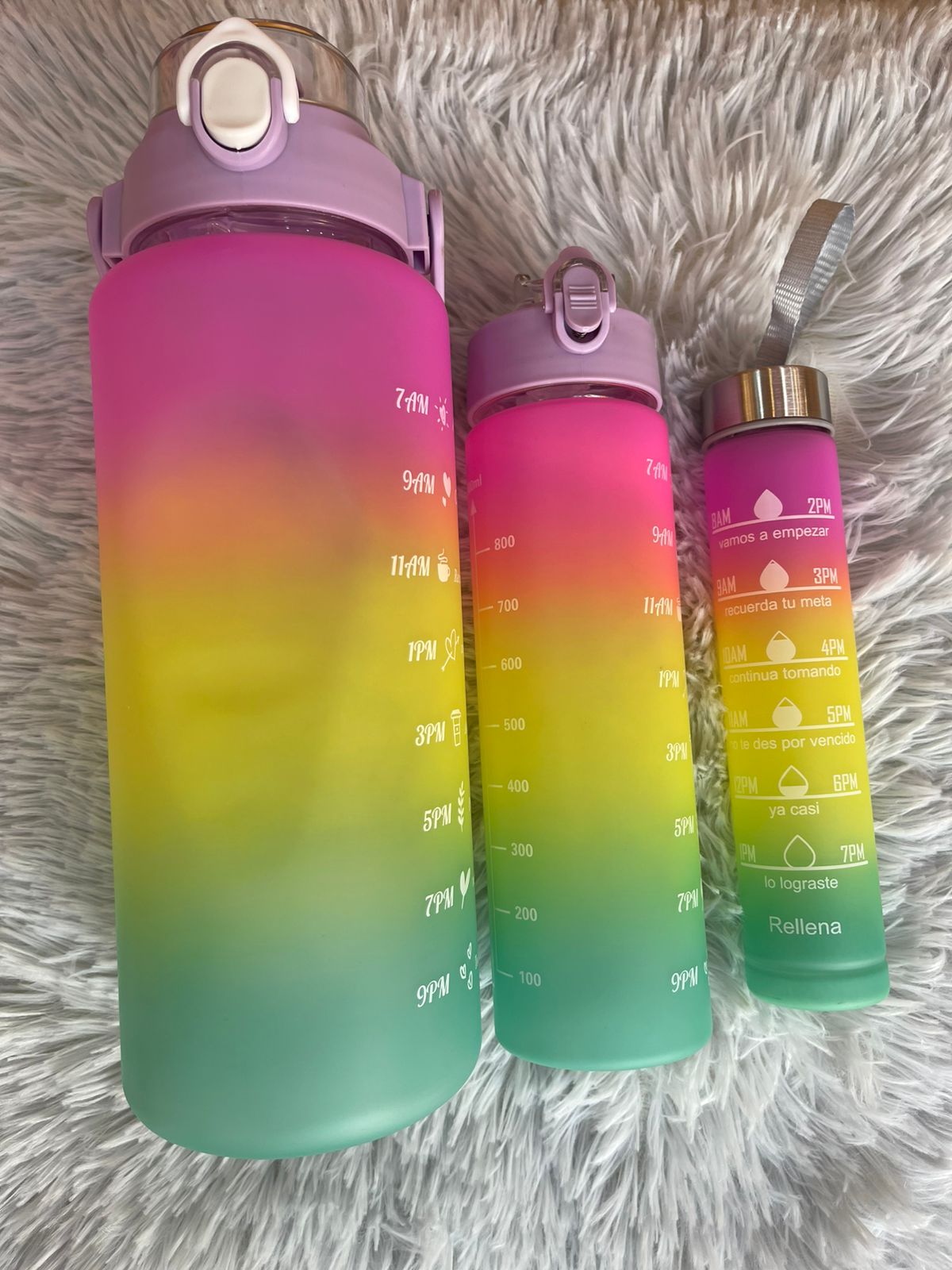 Este combo incluye tres termos de diferentes tamaños para adaptarse a tu ritmo y necesidades: